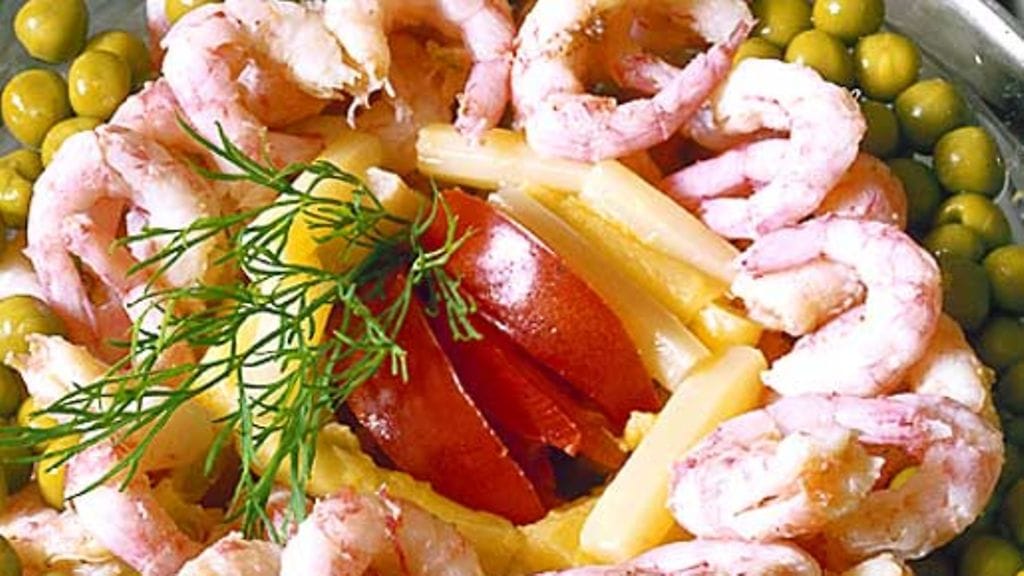 3. Sekoita kastike ja lusikoi salaatille. Koristele tillillä.