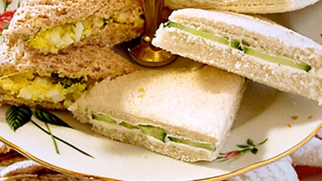 2. Muna-majoneesitäyte: Kuori munat ja muussaa ne haarukalla. Sekoita siihen majoneesi, suola ja pippuri. Majoneesia tulee olla vain sen verran, että se sitoo munahakkeen. Sekoita joukkoon vielä silputtu krassi. Levitä täytettä puoleen voidelluista viipaleista ja paina päälle toiset viipaleet. Leikkaa kolmioiksi.