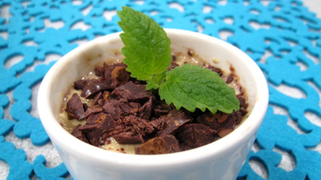 Yhdistä kerma-espressoseos ja keltuaiset keskenään. Mausta vanilliinisokerilla. Jaa seos jälkiruokakuppeihin (tulee kestää 100 asteen lämpöä).