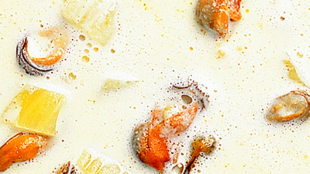 2. Aseta simpukat lämmitetyille lautasille, kaada päälle kuuma keitto ja tarjoile välittömästi.