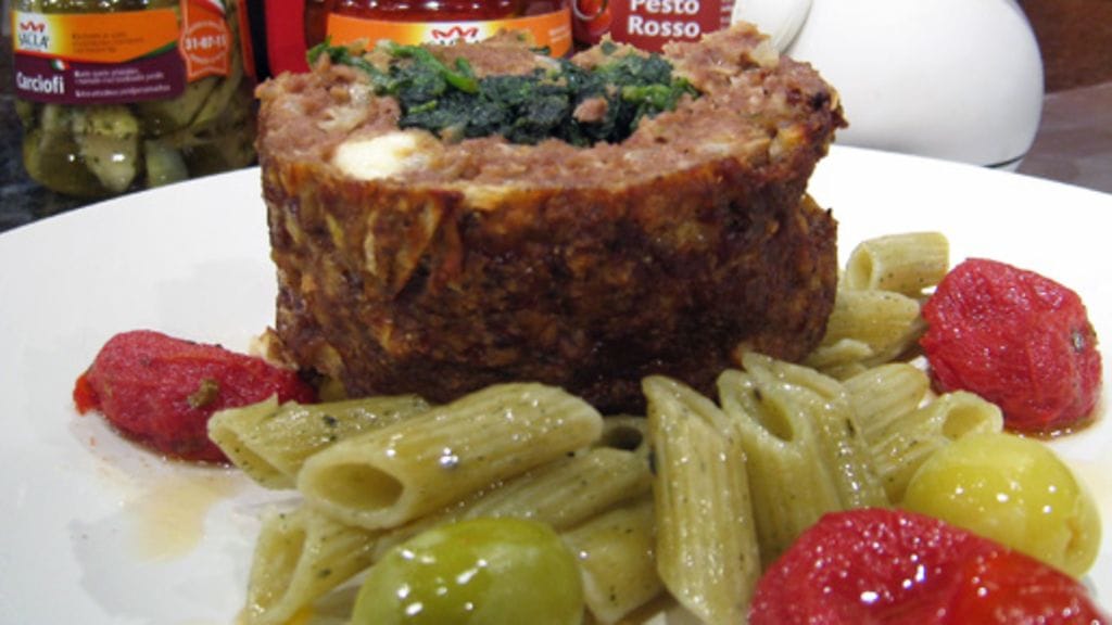 Kuullota pinaatinlehdet ja levitä jauhelihamassa leivinpaperille parin sentin paksuiseksi levyksi. Lusikoi pinaatti lihan päälle ja taita mureke pötköksi. Paista 200-asteisessa uunissa reilu puoli tuntia.