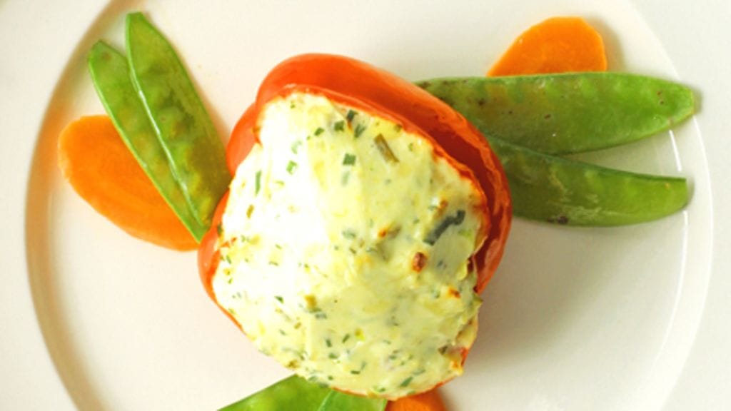 2. Huuhtele paprikat, puolita ja poista siemenet. Kuumenna vettä kattilassa ja käytä paprikapuolikkaita kiehuvassa vedessä. Huuhdo ne sitten kylmällä vedellä. Täytä paprikat polentatäytteellä.