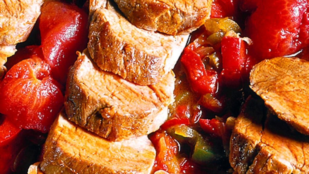 3. Lisää paprika, kaada mukaan viini ja tomaatit. Mausta ja anna kiehua hiljalleen kunnes suurin osa nesteestä on haihtunut.
