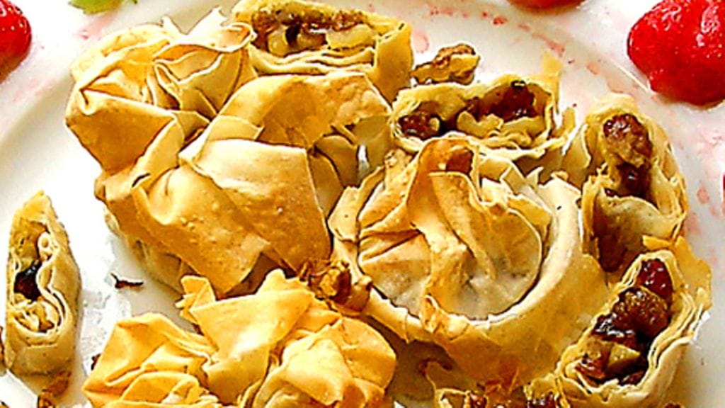 3. Paista nyyttejä 15-20 minuuttia, kunnes filotaikina on kauniinväristä. Tarjoile jäätelön kanssa.