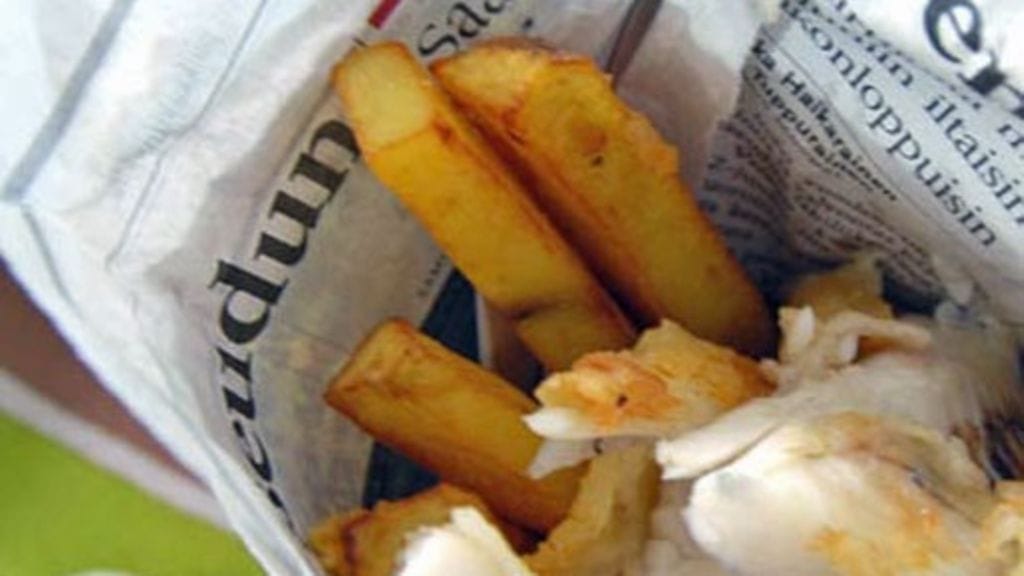 Voit kääriä kalat ja perunat voipaperin sisälle ja sitten sanomalehteen. Näin ne pysyvät lämpiminä hetken.