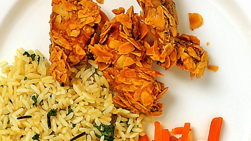 3. Keitä riisi pakkauksen ohjeen mukaan. Mausta suolalla ja pippurilla. Hienonna tuore korianteri ja sekoita riisin kera juuri ennen tarjoilua. Tarjoile kanat ja riisi keitettyjen porkkanatankojen kera, koristele lehtipersiljalla.