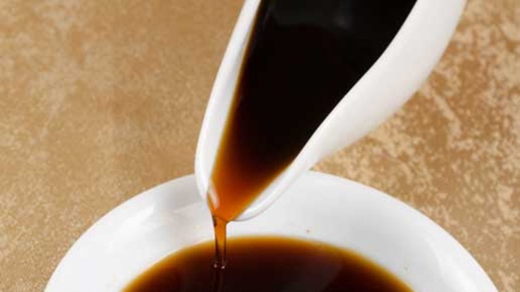 3. Sekoita soija, sokeri ja viinietikka ja kuumenna kattilassa. Sekoita loput maissitärkkelyksestä vesitilkkaan suurusta varten. Lisää suurus kastikkeeseen ja sekoita kunnes kastike on sileä. Kaada kastike lihan päälle.