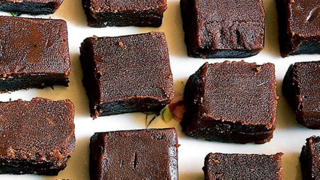 3. Lisää mantelit ja sekoita, kaada massa vuokaan. Anna jäähtyä ja leikkaa sopivan kokoisiksi paloiksi.