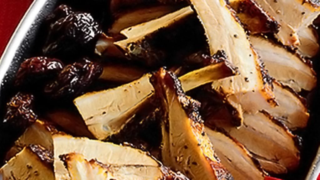 2. Siivilöi keitinliemi ja jäähdytä. Kuori rasva ja kaada liemi uudelleen kylkirivien päälle. Lämmitä ennen tarjoilua. Mausta mustapippurilla myllystä ja suolalla.