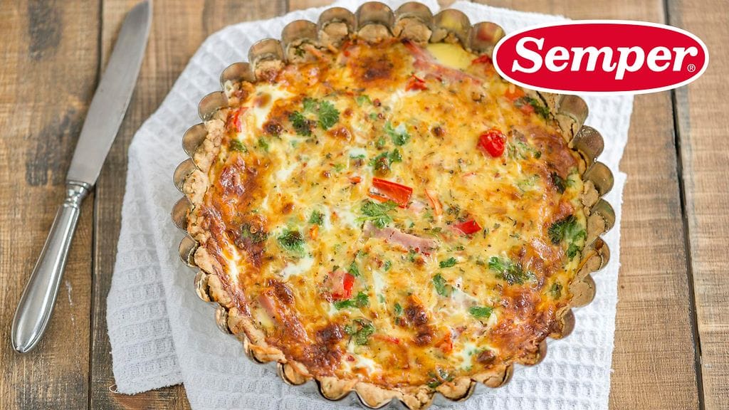 Painele taikina voidellun, Ø 24 cm piirasvuoan pohjalle ja reunoille. Esipaista 200°C:ssa n. 10 minuuttia.