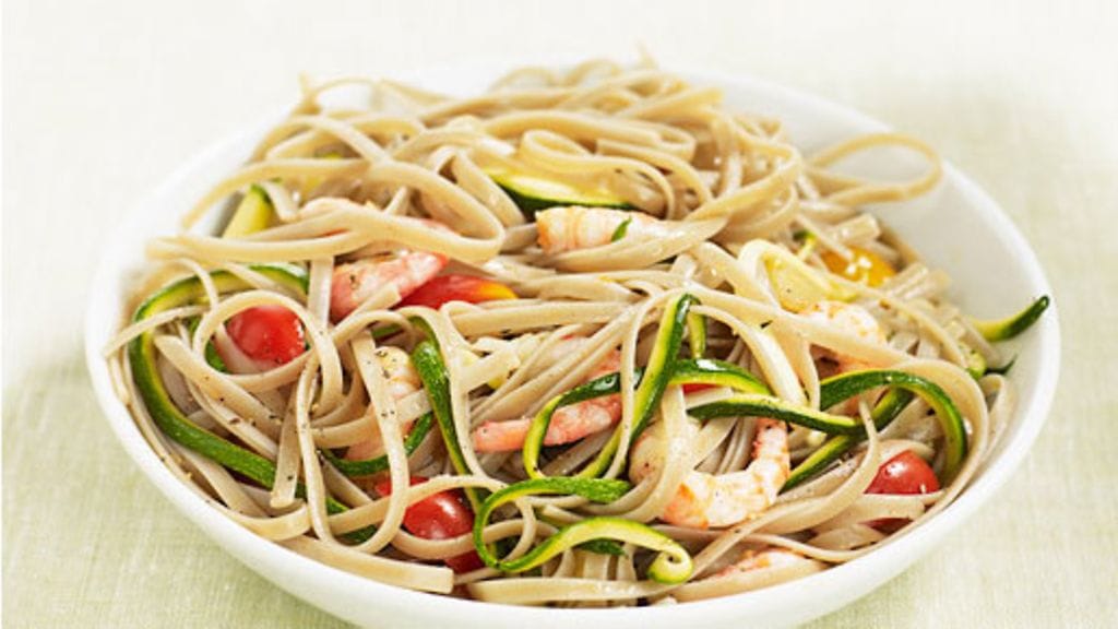 Keitä pasta pakkauksen ohjeen mukaan ja tarjoa katkarapu-chilikastikkeen kera. Laita annoksen päälle Parmesan-juuston lastuja.