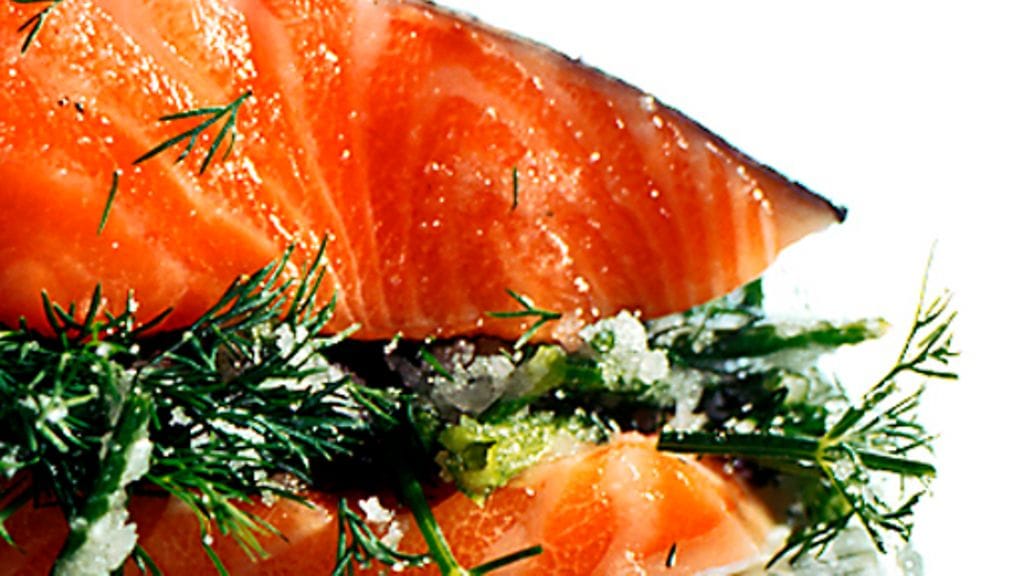 2. Hiero fileisiin suola-sokeriseosta ja laita fileiden väliin runsaasti katkottua tilliä. Paina fileet vastakkain, nahkapuoli ulospäin ja työnnä ne muovipussiin. Pidä pussi huoneenlämmössä, kunnes suola ja sokeri ovat sulaneet.