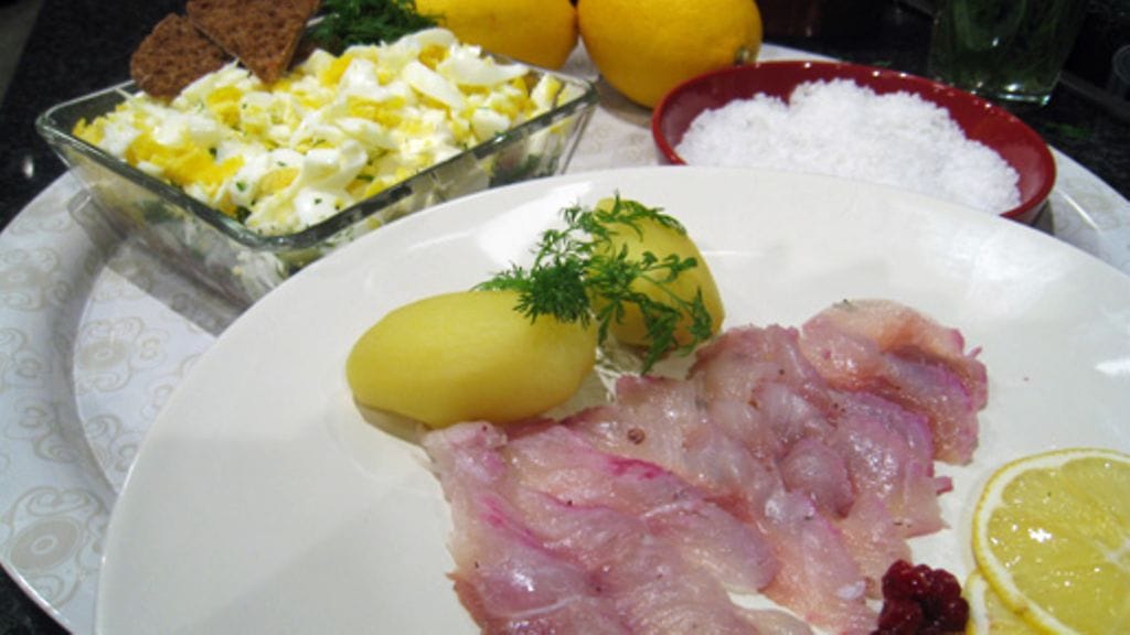Pakkaa kalat kelmuun ja anna graavaantua jääkaapissa mielellään yön yli. Kuori puolukat pois kalan pinnasta ja leikkaa siitä ohuita vipaleita.