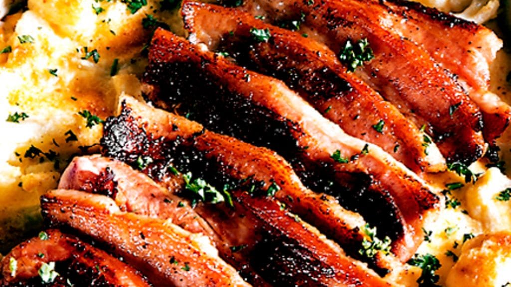 3. Kaada kastike kukkakaalien päälle ja gratinoi uunissa, kunnes pinta on saanut kauniin värin. Viipaloi läski, paista se rapeaksi ja ripottele gratiinin päälle.