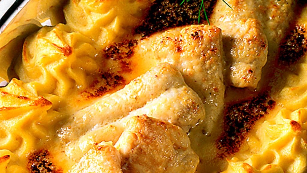 1. Aloita perunasoseella: Kuori ja keitä perunat. Valuta vesi pois ja survo perunat. Sekoita surveeseen voi ja keltuaiset. Mausta suolalla ja jauhetulla valkopippurilla.