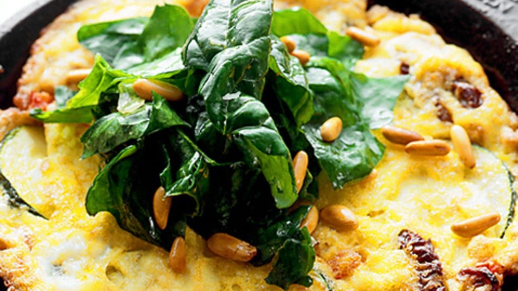 1. Kuumenna uuni 225 asteeseen. Viipaloi kesäkurpitsa, paista viipaleet öljyssä molemmin puolin ja lado ne uuninkestävään vuokaan. Suikaloi paprika ja lisää vuokaan oliivien kera. Mausta suolalla ja pippurilla.