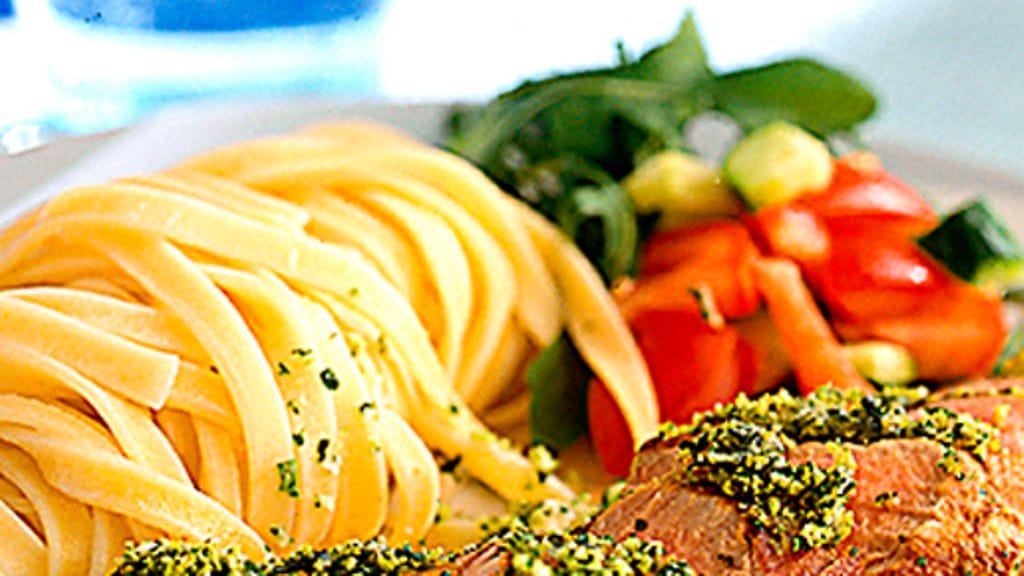 3. Keitä tagliatelle pakkauksen ohjeen mukaan. Kaada keitinvesi pois ja valuta pasta lävikössä. Viipaloi vasikanfilee, sirottele päälle gremolataa ja tarjoile juuri keitetyn tagliatellen kanssa.