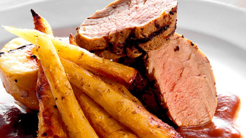 3. Anna lihan vetäytyä 5 minuuttia ennen viipalointia. Tarjoile mustajuurien kanssa.