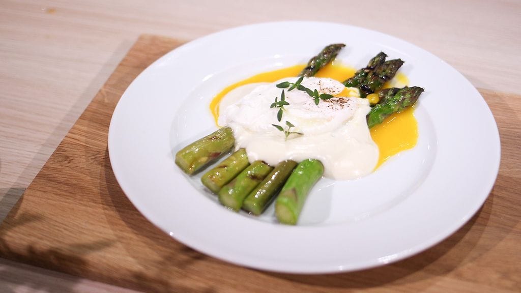 Kiehauta kattilassa vettä ja keitä parsoja nopeasti noin 30 sekuntia. Jäähdytä kylmässä vedessä ja kuivaa hyvin. Kuumenna parila- tai paistinpannu kuumaksi, paista parsoja kummaltakin puolelta pari minuuttia, kunnes niissä on kaunis grillattu pinta.
