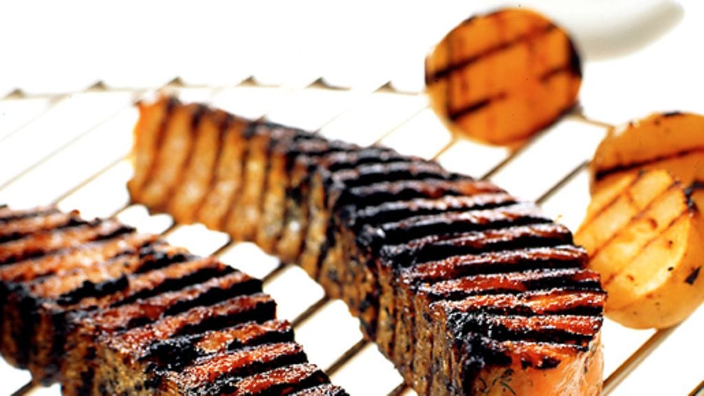 3. Odota, kunnes grillissä on hyvä, harmaa hiillos. Grillaa lohiviipaleita 5-7 minuuttia kummaltakin puolelta.