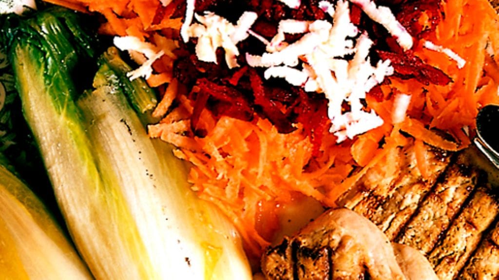 3. Valuta endiivit ja tarjoile ne lihan ja raastettujen kasvisten kera. Raasta päälle hieman piparjuurta.