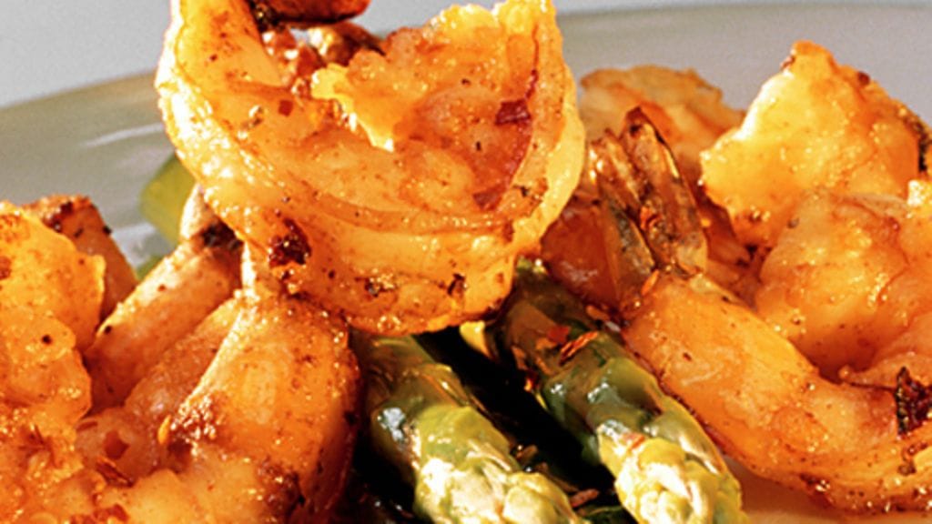 3. Kuori jättikatkaravut mutta anna pyrstön uloimman osan olla paikallaan. Halkaise katkaravut pyrstöstä alaspäin mutta älä täysin halki, puolikkaiden pitää pysyä yhdessä. Paista katkarapuja 4-5 minuuttia miedosti ruskistetussa voissa keskilämmöllä. Asettele parsat lämpimille lautasille ja jaa katkaravut niiden päälle. Tiputtele päälle kastiketta, tarjoile heti.