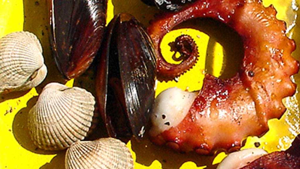 3. Grillaa simpukoita muutama minuutti, kunnes ne aukeavat. Heitä pois ne, jotka eivät aukea. Grillaa mustekaloja 3-4 minuuttia kummaltakin puolelta.