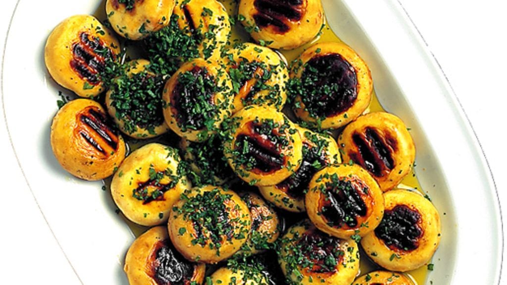3. Pane grillatut herkkusienet kulhoon. Sekoita oliiviöljy ja sitruunamehu. Valuta seos vastagrillattujen sienten päälle. Koristele persiljalla.