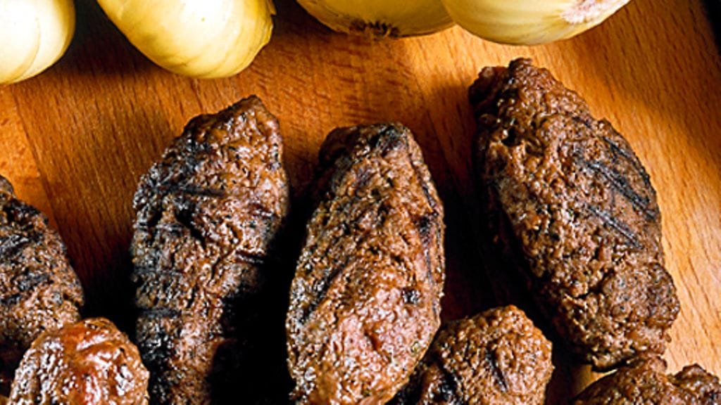 1. Sekoita jauheliha ja mausteet, muotoile pitkulaisiksi pihveiksi.