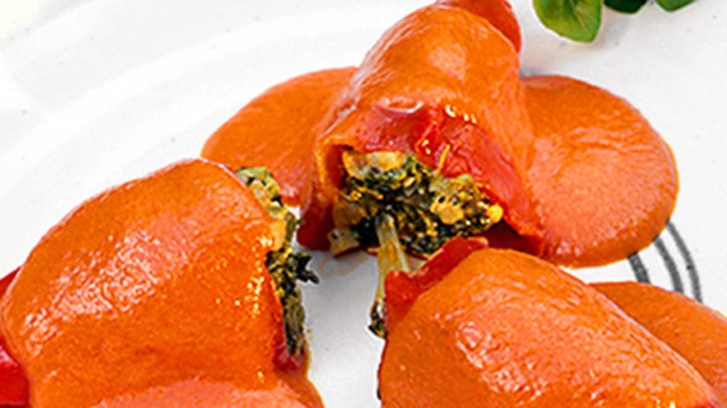 1. Leikkaa paprikoista kanta pois ja raaputa pois siemenet. Raasta sinihomejuusto ja kuutioi herkkusienet. Täytä paprikat juustolla ja sienillä.
