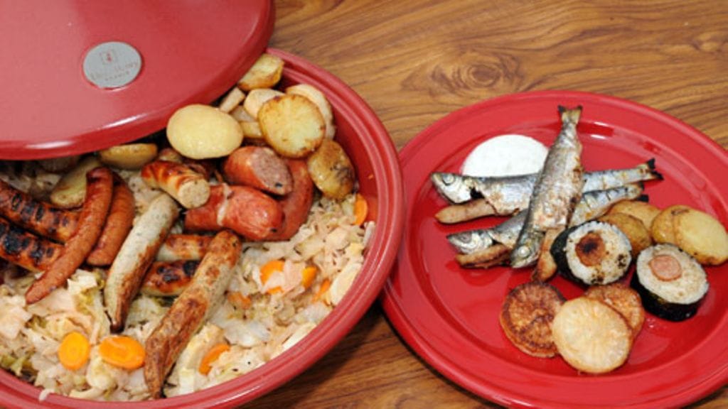 Puhko muikut ja leikkaa bratwurst pätkiksi ja sitten neljään osaan lohkoiksi. Työnnä muikun sisään makkaralohko ja asettele muikut halsteriin. Suolaa kalat pinnoiltaan ja anna maustua 15 minuuttia. Halsteroi nopeasti grillissä.