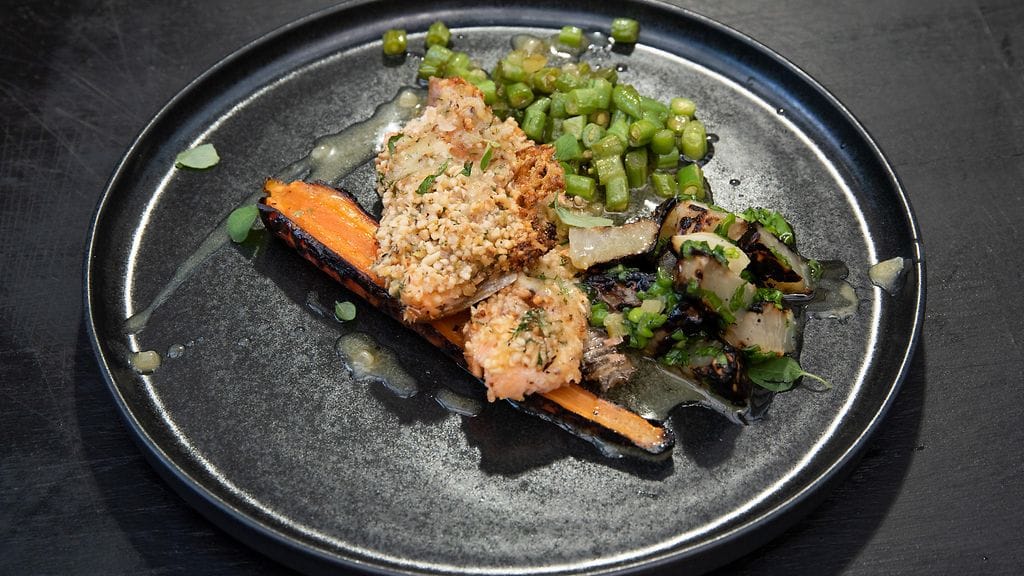 Kuori kyssäkaali ja leikkaa kaali 4 osaan. Mausta kyssäkaali oliiviöljyllä ja suolalla. Laita kaalilohkot grilliin. Laita porkkanat kokonaisina grilliin.