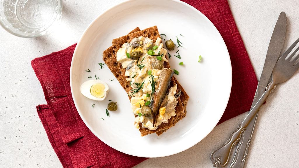 Sekoita kananmunat, hienonnettu matjes-sillifile, sipuli, tilli, ruohosipuli sekä majoneesi ja creme fraiche. Sekoita ja mausta tarvittaessa pippurilla. Tarjoile paahdettujen mallasleipien kera.