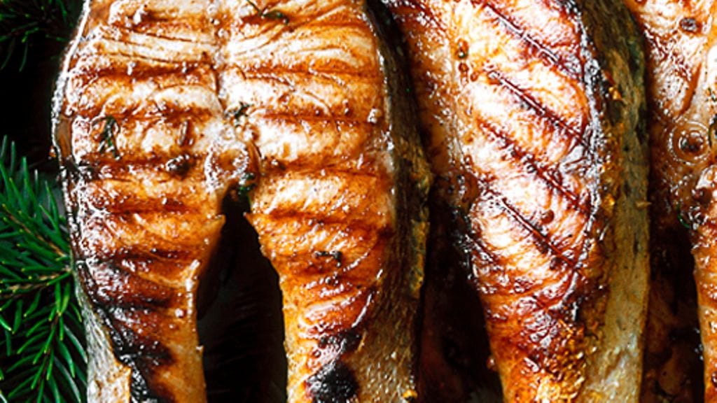 2. Raaputa mausteseos kaloista, penslaa grilliritilä öljyllä ja grillaa lohiviipaleita muutama minuutti molemmin puolin.