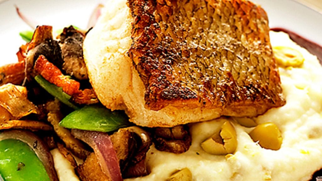 1. Suolaa kala kauttaaltaan ja pane jääkaappiin tunniksi. Kuori ja keitä perunat pehmeiksi. Lämmitä maito oliiviöljyn ja voin kanssa. Höyrytä kypsät perunat ja purista ne perunapuristimella kattilaan. Sekoita joukkoon maitoseos, lisää sitruunankuoriraaste ja oliivit ja mausta suolalla ja pippurilla.