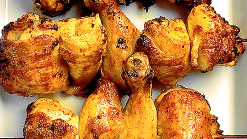3. Sekoita sahrami ruokalusikalliseen vettä. Sekoita sulatettu voi ja sahramiliuos sipuli-sitruunaliuokseen ja levitä sitten kananpalojen päälle. Halstraa tai grillaa vartaita 10-15 minuuttia. Kääntele vartaita silloin tällöin ja voitele sipuli-sitruunaliuoksella. Liha on kypsää, kun lihaneste on väritöntä ja läpikuultavaa. Tarjoa vartaat saman tien.