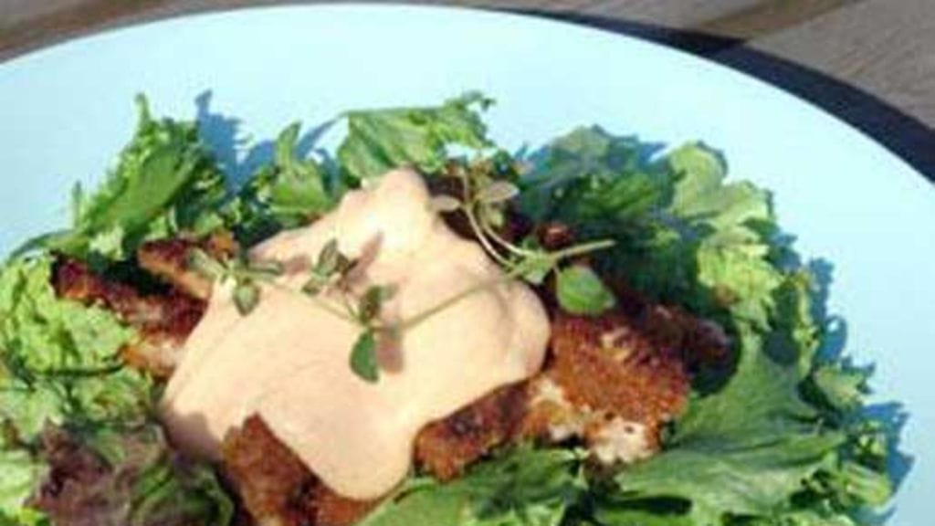 Leikkaa liha pitkiksi suikaleiksi ja jauha hapankorppu hienoksi tehosekoittimen kulhossa. Pyöräytä suikaleet korppujauhoissa ja paista ne sitten öljyssä. Tee dippikastike sekoittamalla chilikastiketta ja ranskankermaa. Lisää ruokaisuutta saat esimerkiksi riisillä, perunalla tai pastalla sekä myös lisäkesalaatilla.
