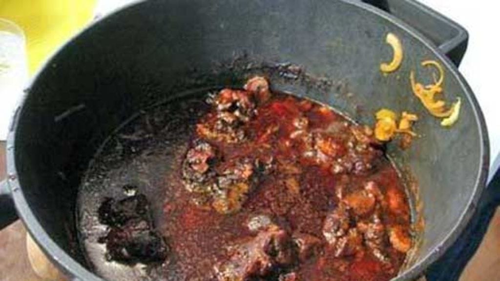 Kuori sipuli ja hienonna sellerin sekä herkkusienten kera. Kuori valkosipulinkynnet ja murskaa ne kevyesti. Kuullota vihannekset ja sienet kattilassa tomaattipyreen kera. Lisää joukkoon nesteet ja häntäpalat. Lisää mausteeksi vielä timjamin oksia ja laakerin lehti. Anna häntien hautua miedolla lämmöllä noin 2-2,5 tuntia. Tarjoile esimerkiksi salaatin ja riisin kera.