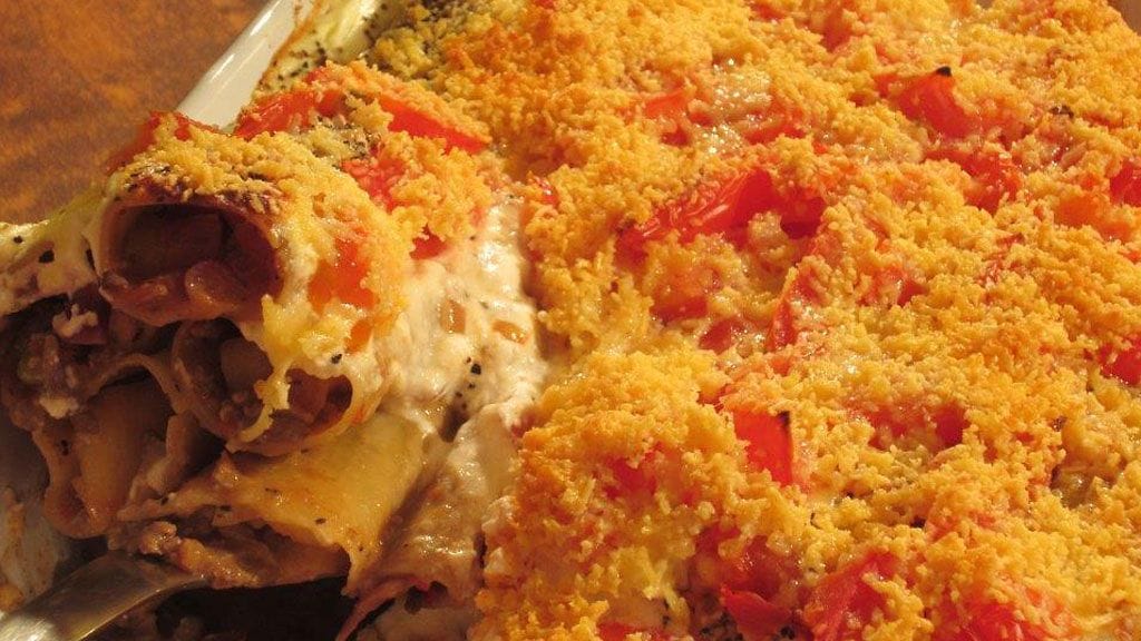 Työnnä täytettä putkien sisään tavallisella veitsellä työntäen. Lado täytetyt putket 1-2 kerrokseksi isolle, laakealle ja voidellulle uunivuoalle.