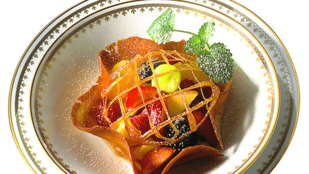 1. Kulhot: Kuumenna uuni 225 asteeseen. Vatkaa voi ja sokeri valkoiseksi ja ilmavaksi, vatkaa munanvalkuaiset kovaksi vaahdoksi ja kääntele valkuaisvaahto varovaisesti voi-sokeriseokseen. Lisää jauhot ja sekoita tasaiseksi taikinaksi. Piirrä halkaisijaltaan n. 12 cm ympyröitä leivinpaperille ja levitä ohut kerros taikinaa ympyröihin. Paista levyjä uunin keskitasolla 4-5 minuuttia, reunojen pitää alkaa ruskistua. Irrota levyt heti, laita ne ylösalaisin käännettyjen kuppien tai pienten kulhojen päälle ja muotoile aaltoileviksi kulhoiksi, ne jähmettyvät nopeasti. Jos teet ”liian monta” kulhoa, loput voi säästää kuivassa paikassa seuraavaa jälkiruokakertaa varten.