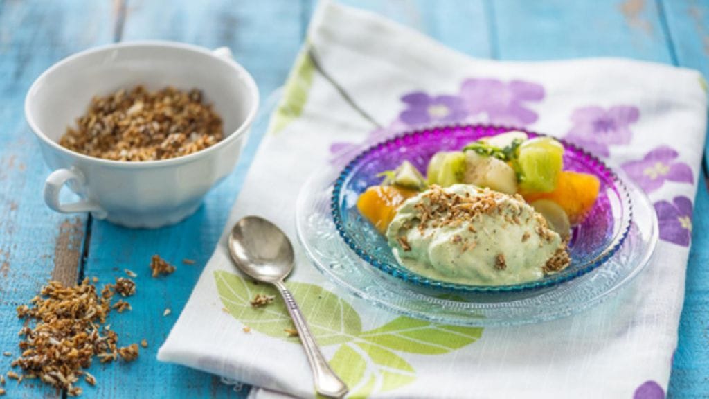 Laita ne kulhoon. Purista joukkoon limen mehu. Lisää hunaja ja hienonnettua minttua tai sitruunaverbenaa.