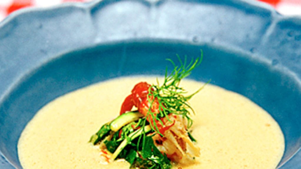 2 Siivilöi keitto ja kaada lämpimille lautasille. Koristele ravunpyrstöillä ja tillillä.