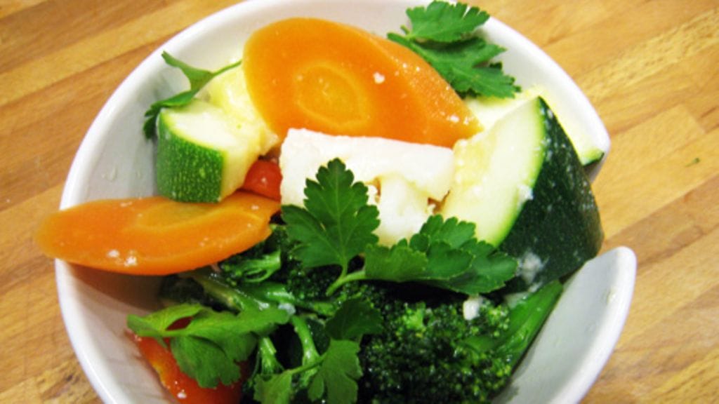 Paloittele kasvikset reiluiksi paloiksi. Keitä hyvin suolatussa vedessä kunnes kasvikset ovat kypsiä, mutta niissä on vielä hyvä purutuntuma. Valuta hyvin ja mausta kuumana oliiviöljyllä, basilikan lehdillä, parmesaanilla, mustapippurilla ja suolalla.
