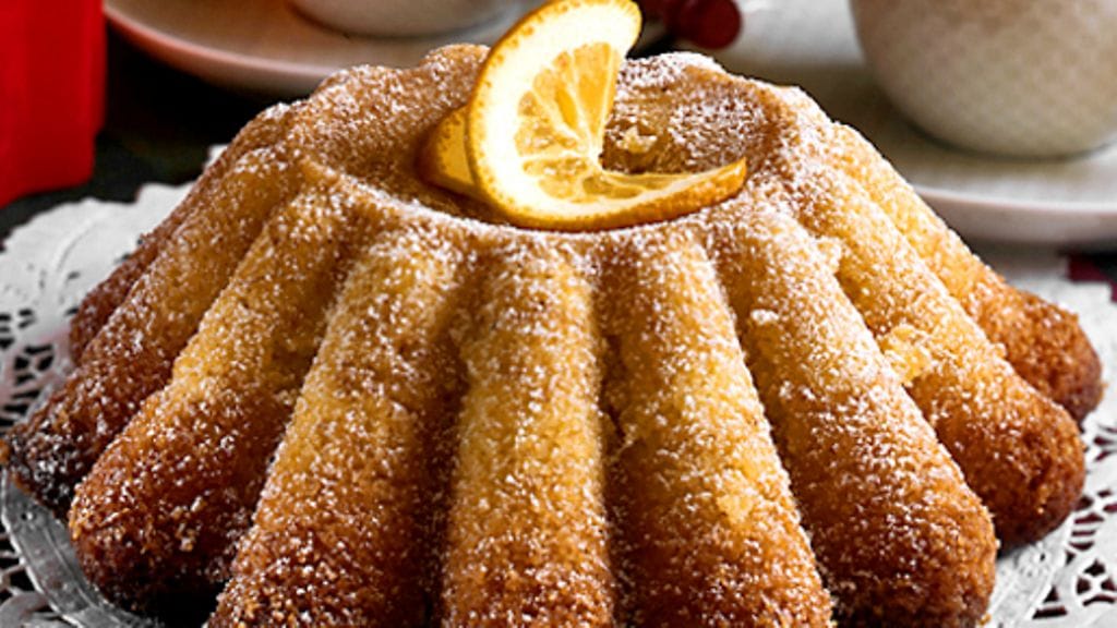 1. Kuumenna uuni 175 asteeseen. Voitele ja jauhota kakkuvuoka. Sekoita margariini ja sokeri ilmavaksi, lisää munat yksi kerrallaan. Lisää appelsiininkuori. Yhdistä jauhot ja leivinjauhe, sekoita taikinaan vuorotellen kerman kanssa.