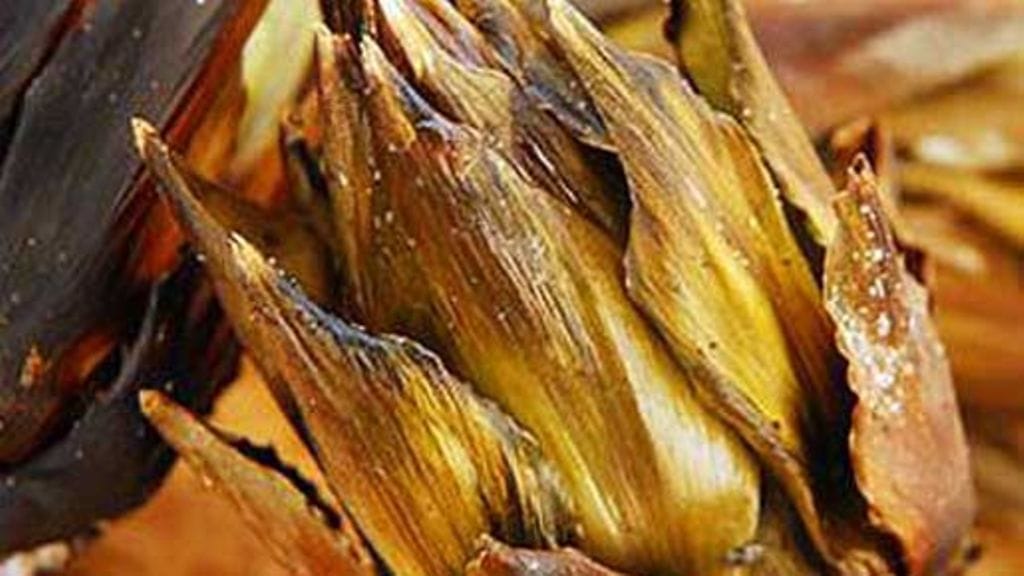 - Laita artisokat hiilloksen päälle ja kypsennä noin 20 minuuttia, tai kunnes ne ovat pehmeitä.