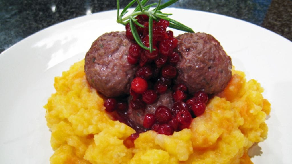 Muotoile kostutetuilla kämmenillä lihapulliksi ja laita uunin pellille. Paista pullat uunissa kypsiksi noin 180 asteessa 10–15 minuuttia.