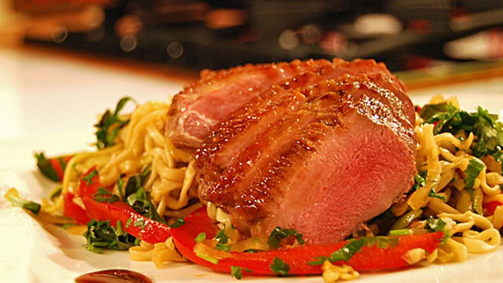 Kypsennä uunissa 180c n.15 minuttia, jolloin sisälämpö saavuttaa 48 asteen lämmön. Nosta kuumat ankanrinnat uunipelliltä pois puhtaalle lautaselle ja peittele fileet ilmavan kevyesti foliolla.