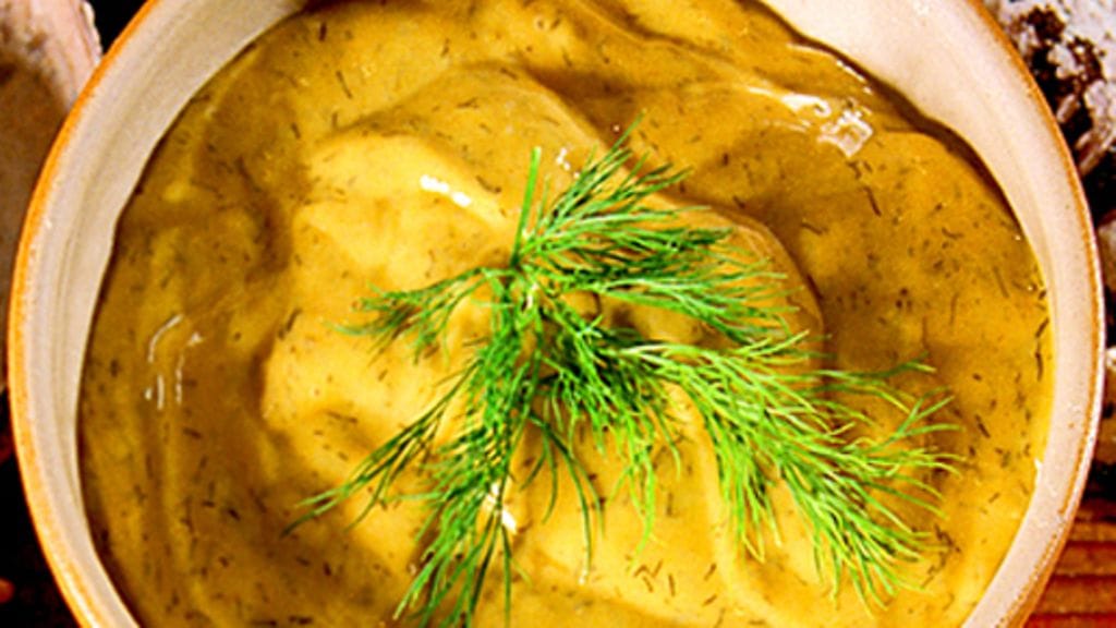 1. Sekoita sinappi, sokeri, viinietikka ja kaikki mausteet paitsi tilli. Vatkaa hiljalleen mukaan öljy kunnes kastike on paksu ja kiiltävä.