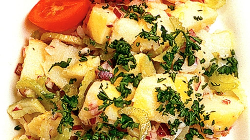 3. Laita perunat, sipulit, sellerit ja persilja kulhoon. Kaada kastike päälle ja sekoita varoen. Anna salaatin jäähtyä ennen kuin laitat sen jääkaappiin. Tarjoile perinteisesti paahtopaistin kera tai jonkin muun keitetyn tai savustetun lihan kera.