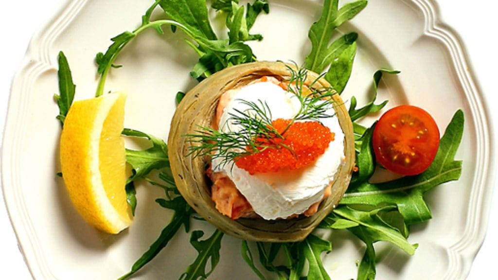1. Sekoita ranskalainen kastike: Ensin suola, pippuri ja etikka, vatkaa sitten mukaan sinappi ja öljy. Marinoi latva-artisokanpohjat kastikkeessa.
